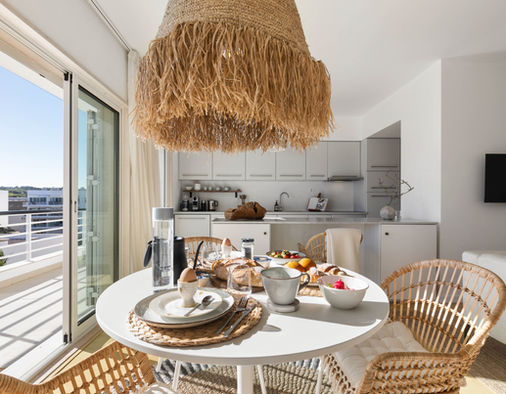These two unique spaces, each with its own distinct personality, offer a sense of calm and balance. Natural colors and materials seamlessly blend with locally sourced contemporary décor and authentic Portuguese design.